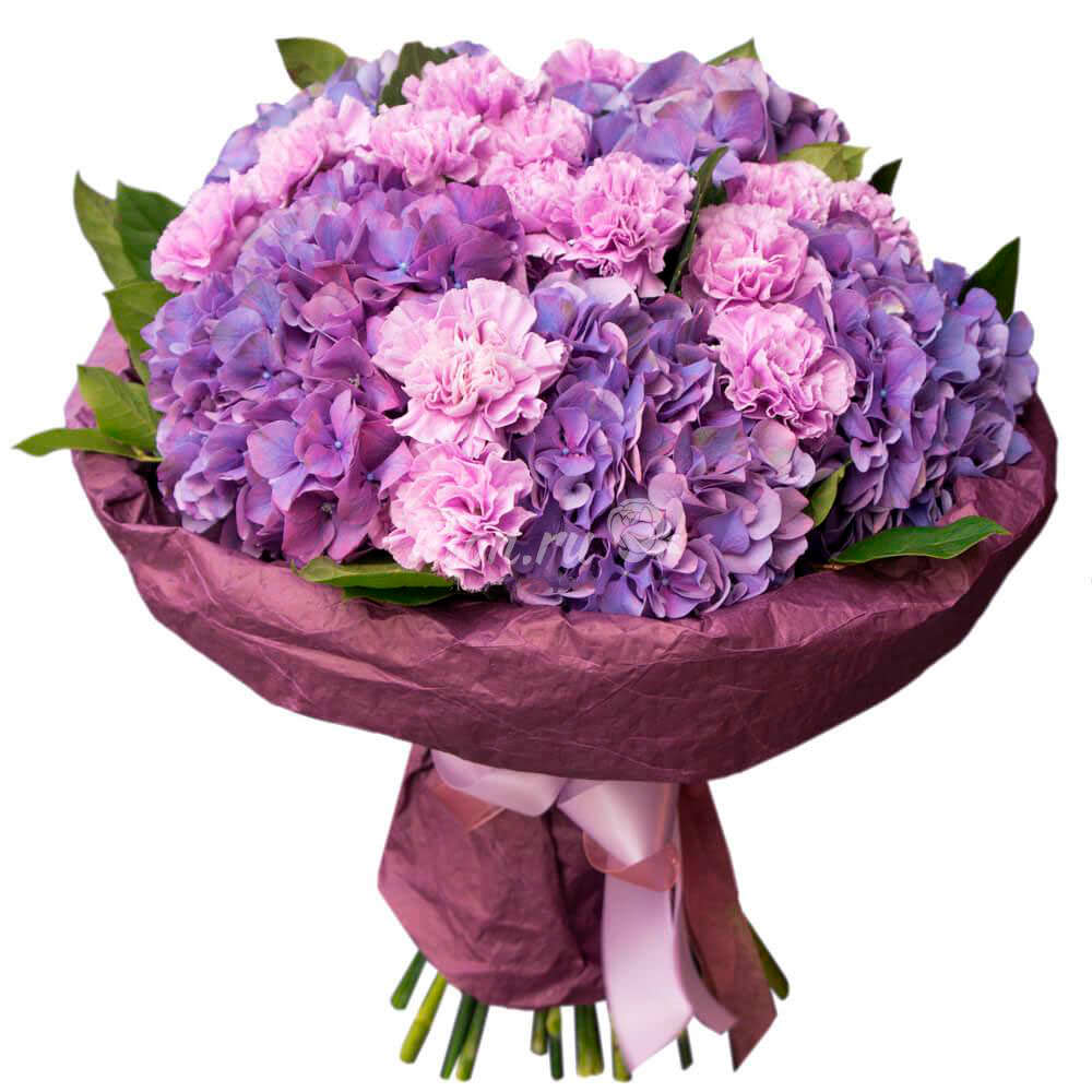 Гортензия, гвоздика, зелень.
