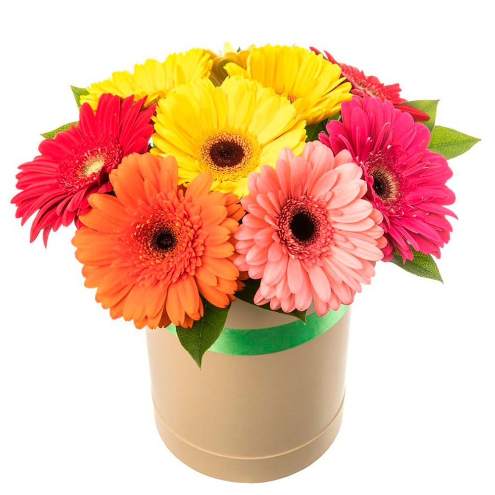 Цветы в коробке «Микс гербер» с гарантией качества, цены и быстрой доставки!